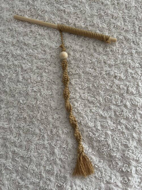 Holzstab mit Makrameestrang und Holzperle eingearbeitet